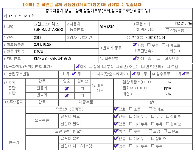 1. 성능점검을 필한 차량으로 보증서 및 점검표교부.