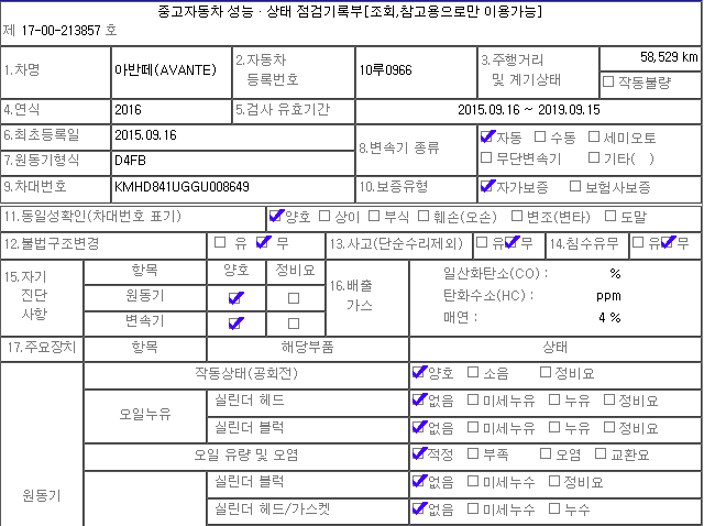 차종 현대 / 아반떼 AD / 1.6 VGT 스마트스페셜