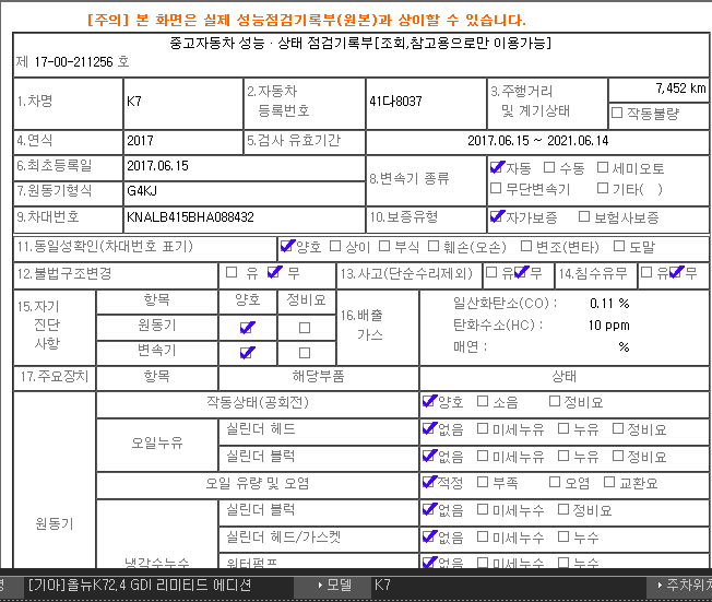 튜닝여부 순정차량