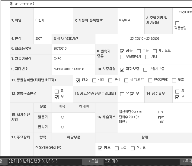 제목 현대 아반떼HD 1.6 VVT S16 PREMIER