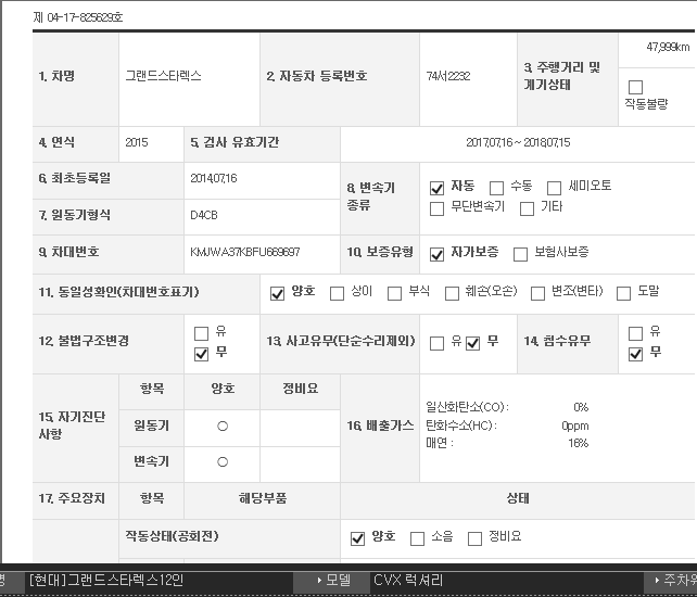 1. 성능점검을 필한 차량으로 보증서 및 점검표교부.