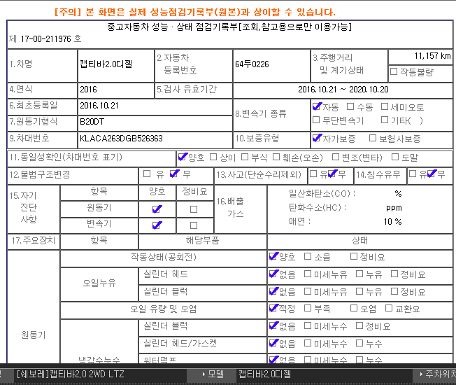 1. 성능점검을 필한 차량으로 보증서 및 점검표교부.