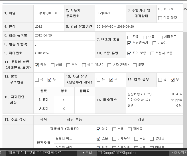 | 차종 | 아우디 / 뉴TT쿠페 2.0 / TFSI 콰토르 | ||