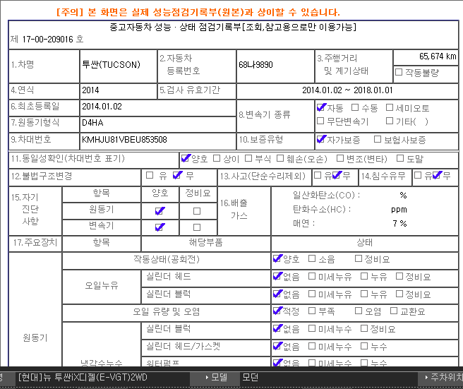 튜닝여부 순정차량