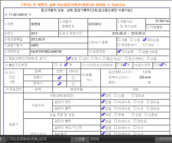 | 차종 | 기아 / 포르테 / GDI 프레스티지 | ||