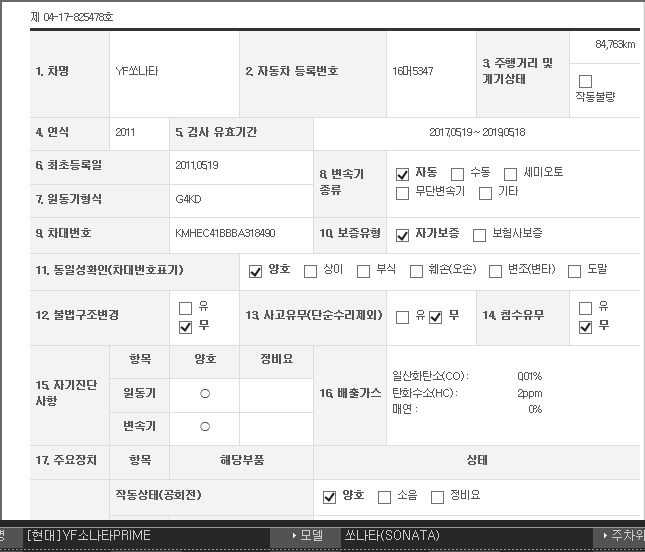1. 성능점검을 필한 차량으로 보증서 및 점검표교부.